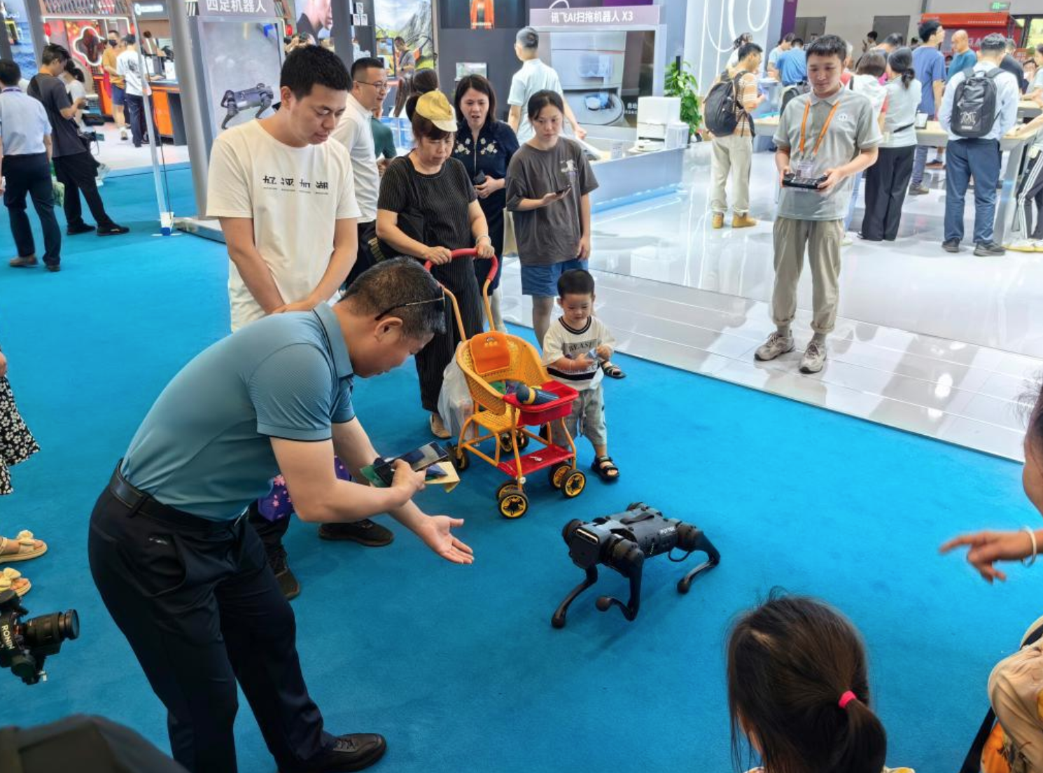 在科大讯飞展区,智能录音笔、翻译机、办公本、AI扫拖机器人等多款搭载讯飞星火大模型的产品集中展出,引来观众驻足围观,有人更是按“展”索“品”,当场上网订购。