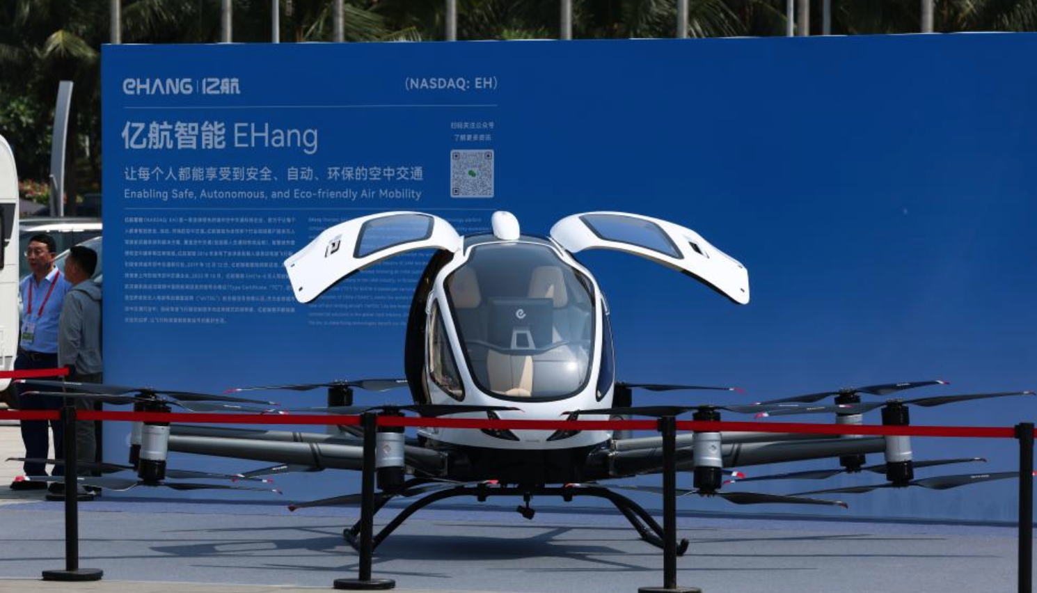 ▲在第四届消博会上展出的无人驾驶载人航空器。新华社记者(杨冠宇 摄)