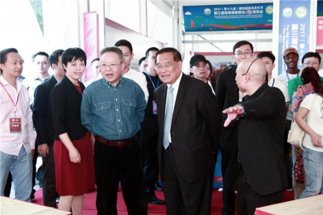 ▲ 2017 年海南国际旅游美食博览会上时任海南省委副书记、省长沈晓明 ( 左二 ) 、中国烹饪协会副会长李亚光 ( 右二 ) 、时任海南省旅游和文化广电体育厅副厅长周平 ( 后排右二 ) 等省厅领导巡视博览会 , 由海南省旅游餐饮协会常务副会长兼秘书长唐洁春 ( 右一 ) 陪同介绍