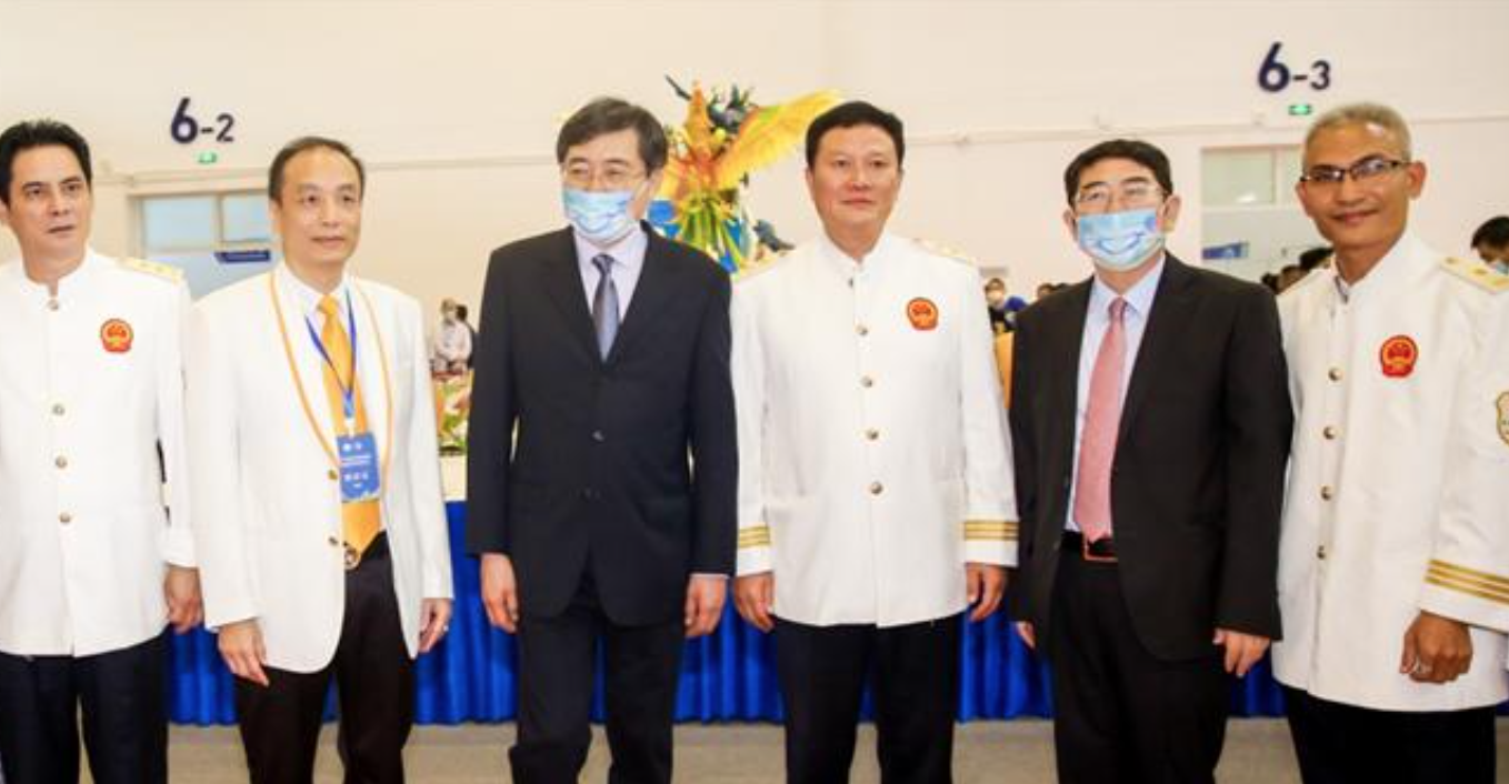 ▲中华人民共和国文化和旅游部党组成员、副部长张旭 ( 左三 ) 、海南省人民政府副省长王路 ( 右二 ) 等领导嘉宾与烹饪大师合影留念。