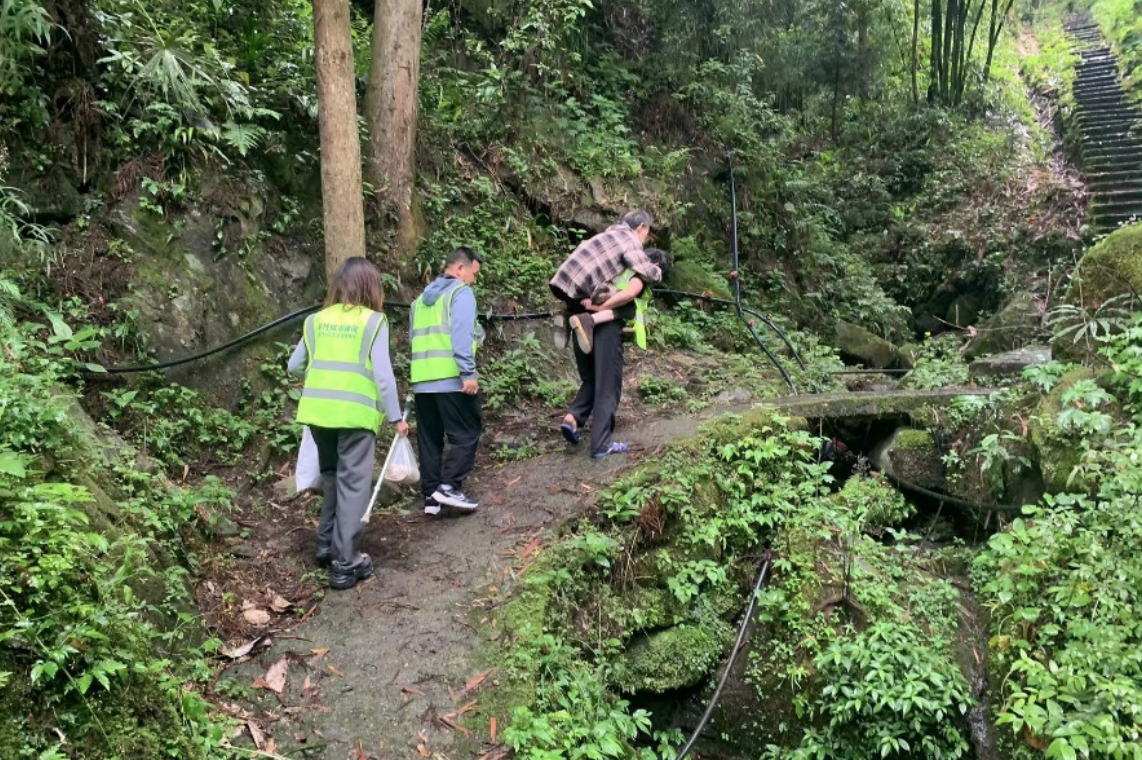 ▲收到山洪预警后,社区志愿者救援队协助村民转移到安全区域