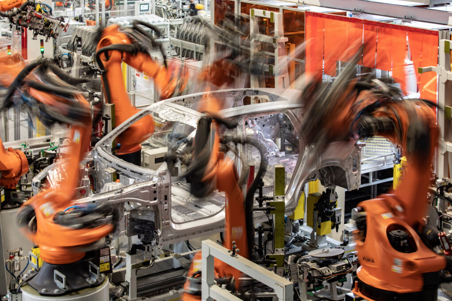 ▲中国的一家电动汽车工厂。拜登总统宣布打算对中国电动汽车征收最高100%的关税。 QILAI SHEN FOR THE NEW YORK TIMES