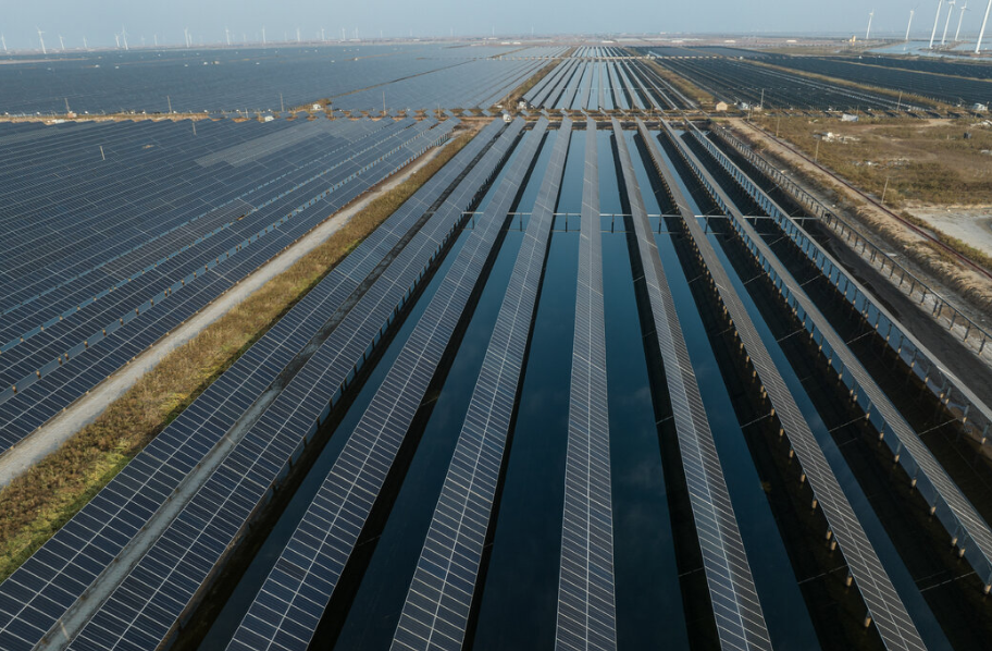 ▲潍坊的一个太阳能和风电场。中国控制着全球太阳能电池板制造各个环节80%以上的生产。 GILLES SABRIÉ FOR THE NEW YORK TIMES
