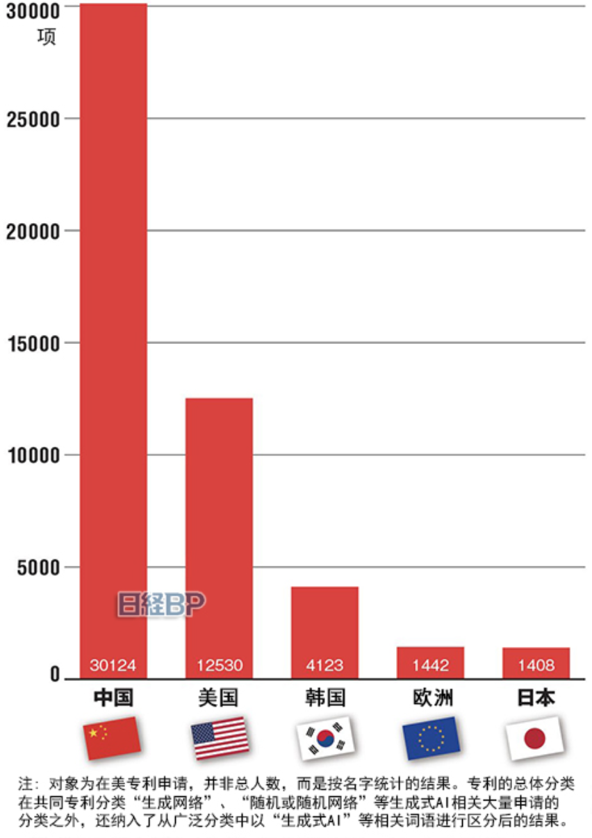熟悉中国企业数字战略的野村综合研究所的专家顾问李智慧表示,“这与中国企业在生成式AI图像和视频生成方面具有优势有关”。 另一方面,还有观点指出,中国在生成文本等的LLM方面落后于美国。在中国上海工作的一位软件工程师表示,“真心话是我们也想使用ChatGPT”。中国政府禁止使用美国OpenAI的“ChatGPT”和美国谷歌的“Gemini”等美国的生成式AI服务。李智慧指出,“由于用于学习的数据仅限于中文,中国企业的LLM性能存在局限性。特别是尖端领域的研究论文中,英语占绝大多数”。 中国在专利申请数量上有着绝对优势。正因为形成了自主的生态系统,要想了解其实力,就必须密切关注专利的内容等。
