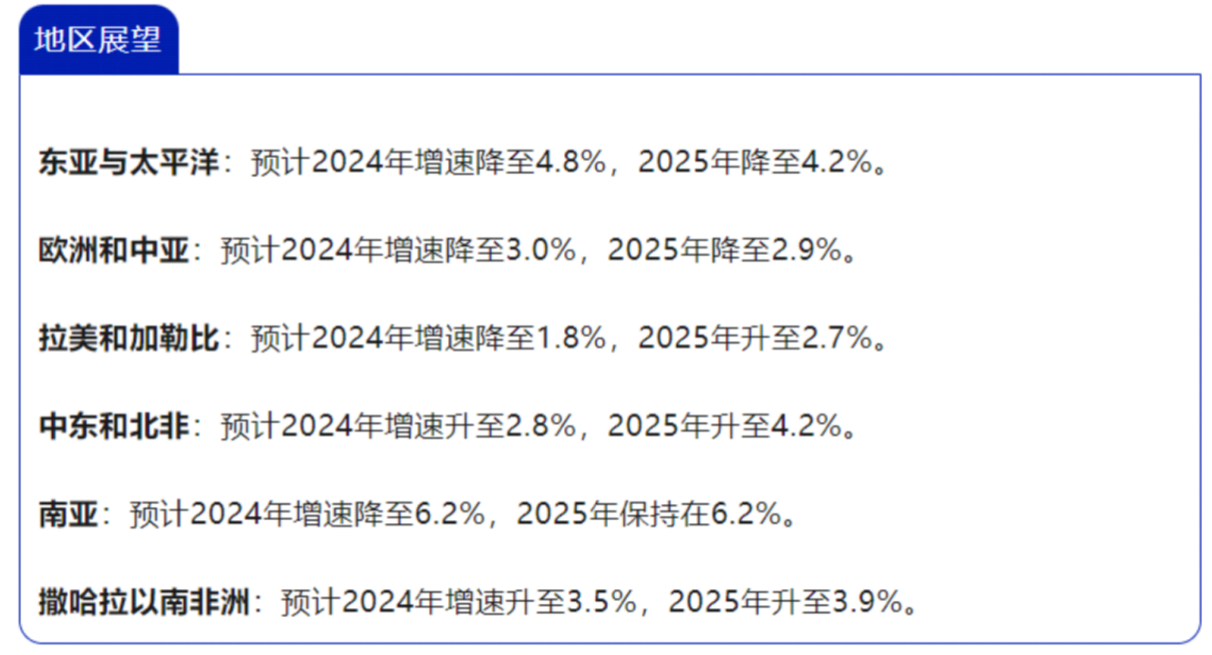 ▲世界银行《全球经济展望》报告对地区的展望
