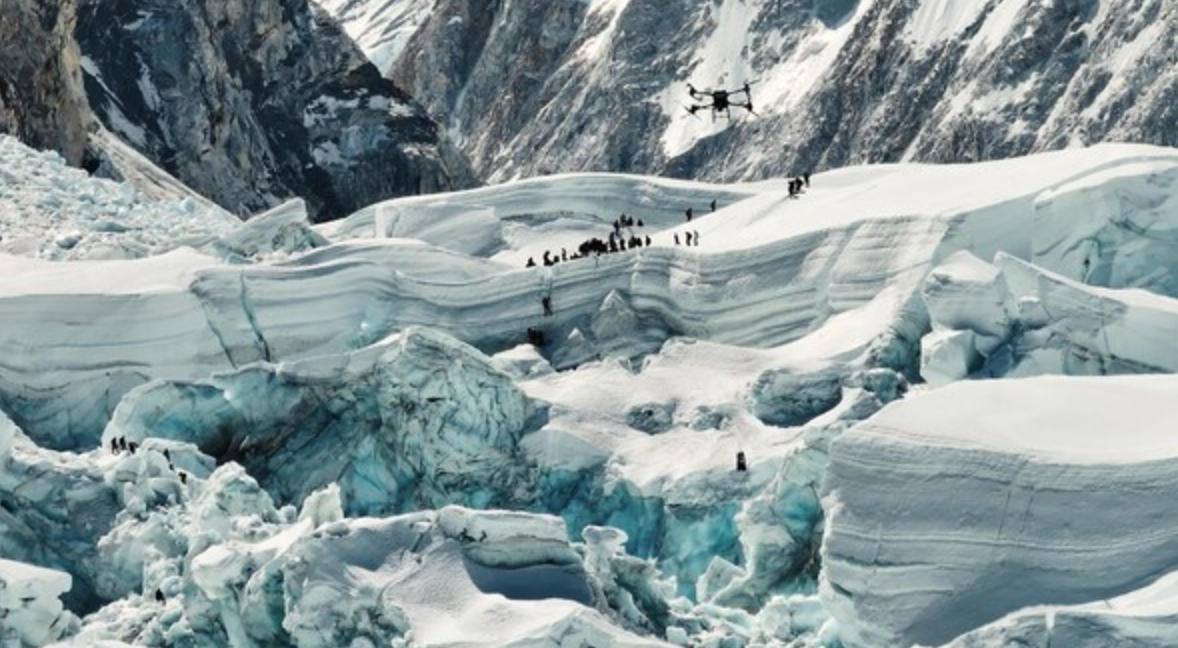 无人机首次成功完成了珠穆朗玛峰大本营和C1营地之间的设备和垃圾的往返运输。这些营地被攀登过程中危险性最高的地段之一昆布冰瀑隔开。虽然直升机理论上可以进行相同的任务,但由于巨大的危险和成本高昂,很少被使用。
