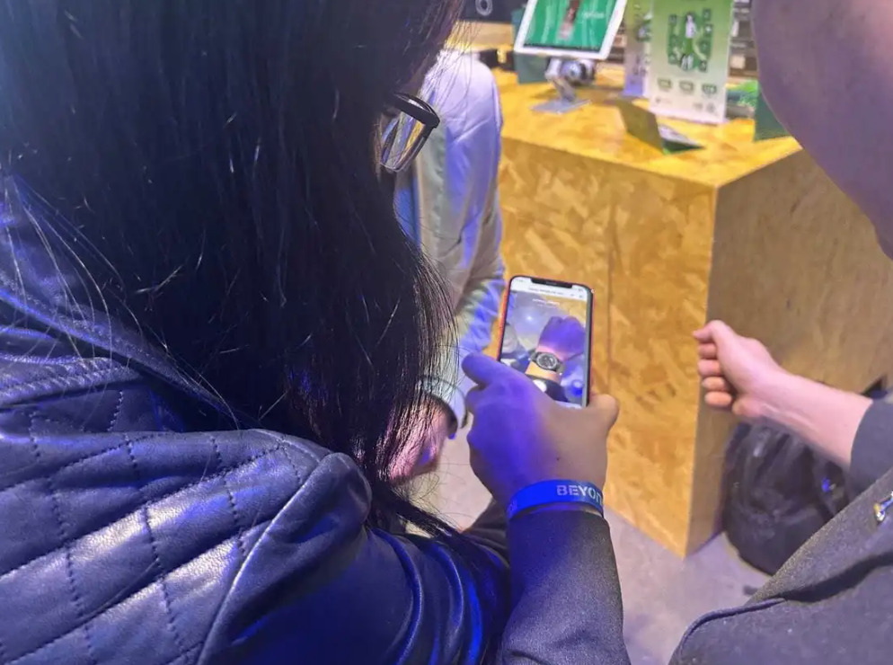 弥知科技的AR试穿试戴产品也吸引了不少观众驻足体验。公司自研AR Tryon引擎为电商品牌客户提供全品类产品的试穿试戴能力,解决线上购物痛点,提供“即看-即试-即买”的一站式购物体验,大幅推动GMV增长。