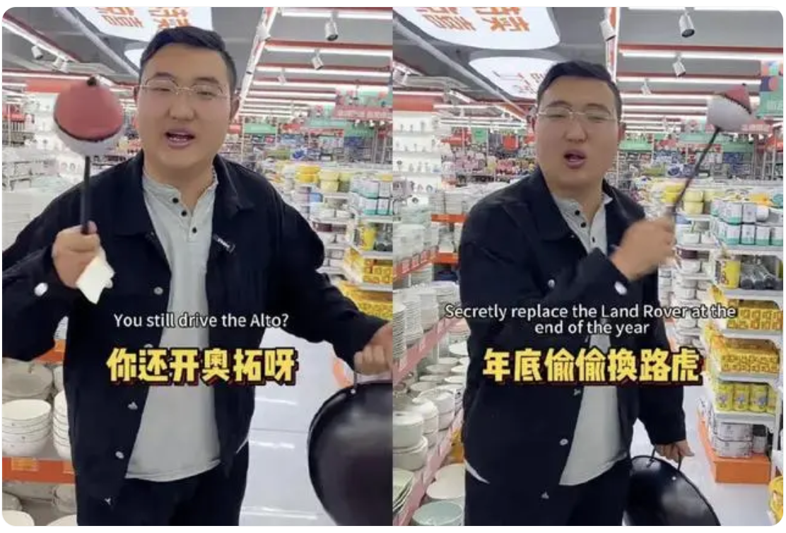 后来,曹浩田每天都要更新短视频,过年也只断更了两三天。之后的视频里,他自信感十足,梳起了背头,穿上了衬衫,用高昂的声音和露齿的笑容介绍着他们展厅的小百货。