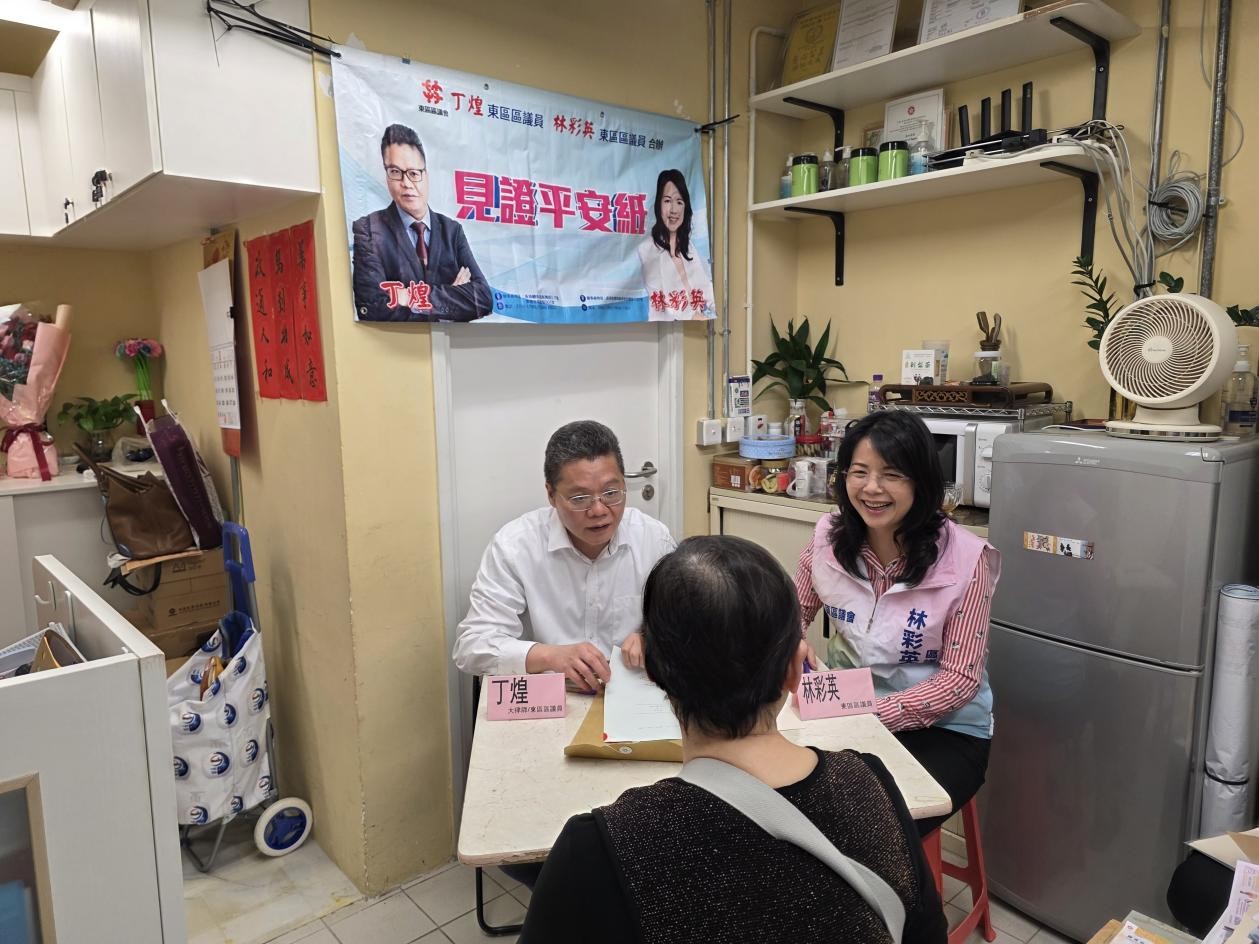 3月25日,東區區議員丁煌、林彩英於辦事處合辦「見證平安紙」及免費法律諮詢社區服務,為居民提供專業、免費的遺囑見證支援,活動反應踴躍,合共超過30名市民受惠。